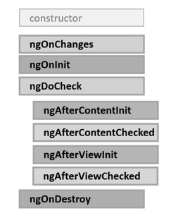 import { Component, OnInit, OnDestroy } from '@angular/core'; @Component({ selector: 'my-app', template: `<p>Hello Angular 2</p>` }) export class AppComponent implements OnInit, OnDestroy { name:string="Tom"; constructor(){ this.log(`constructor`); } ngOnInit() { this.log(`onInit`); } ngOnDestroy() { this.log(`onDestroy`); } private log(msg: string) { console.log(msg); } }