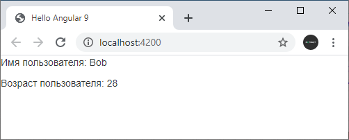 import { Component, OnInit} from '@angular/core'; import { HttpService} from './http.service'; import {User} from './user'; @Component({ selector: 'my-app', template: `<div> <p>Имя пользователя: {{user?.name}}</p> <p>Возраст пользователя: {{user?.age}}</p> </div>`, providers: [HttpService] }) export class AppComponent implements OnInit { user: User; constructor(private httpService: HttpService){} ngOnInit(){ this.httpService.getData().subscribe((data:User) => this.user=data); } }