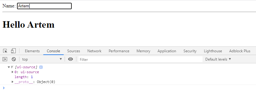 На вход мы получаем елемент. Давайте его законсолим. Вот наша разметка вывелась. Вот наш DOM елемент, который нам доступен.