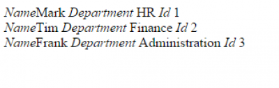 Затем мы можем отобразить вышеупомянутую коллекцию, используя ng-repeat. Далее будут отображаться свойства Name и Department для каждого сотрудника в div: