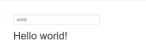 <!doctype html> <html ng-app> <!--ng-app обозначает корень AngularJS-приложения и обычно располагается в корне страницы.--> <head> <title>Hello World!</title> <script src="../angular.js"></script> <link href="../bootstrap.css" rel="stylesheet" /> <link href="../bootstrap-theme.css" rel="stylesheet" /> <style> .box { margin:50px; width: 300px } </style> </head> <body> <div class="box"> <input type="text" class="form-control" ng-model="name" placeholder="Type something"> <!--ng-model связывает форму с моделью. Это значит, что любые изменения в форме обновят данные модели, а при изменении модели - обновится форма (в нашем случае поле ввода).--> <h1 class="h1">Hello {{name}}!</h1> <!--Конструкция <tag>{{ }}</tag> указывает на место связывания данных в HTML. AngularJS будет автоматически обновлять это место при любом изменении свойства name в модели.--> </div> </body> </html>