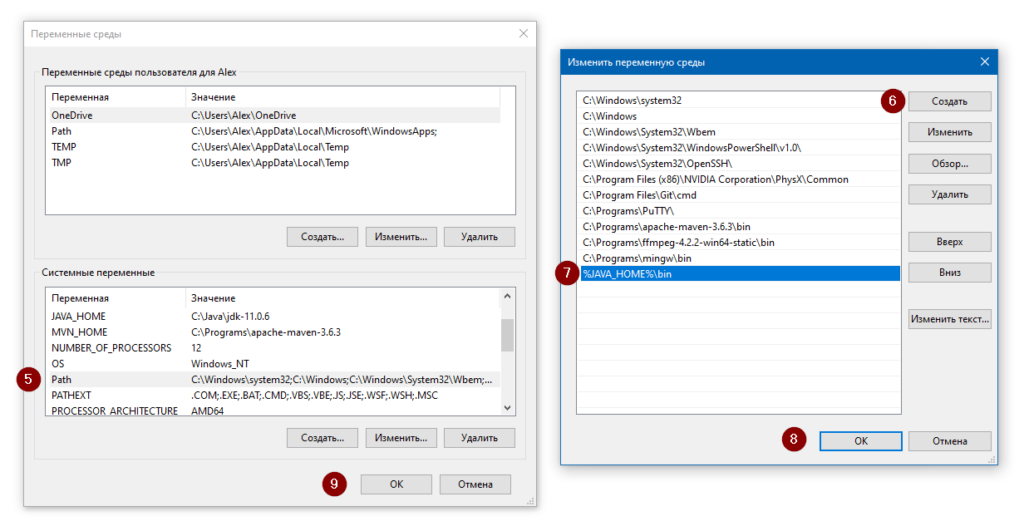 Сохраните изменения, кликнув «OK». Теперь выберите в списке переменную окружения Path и нажмите «Изменить…». В конце списка добавьте строчку со значением %JAVA_HOME%\bin
