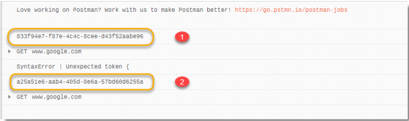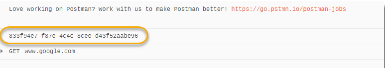 Теперь мы знаем, что Postman получил значение GUID. Итак, попробуем напечатать его на консоли. Откройте консоль, чтобы увидеть запросы, которые мы будем отправлять.