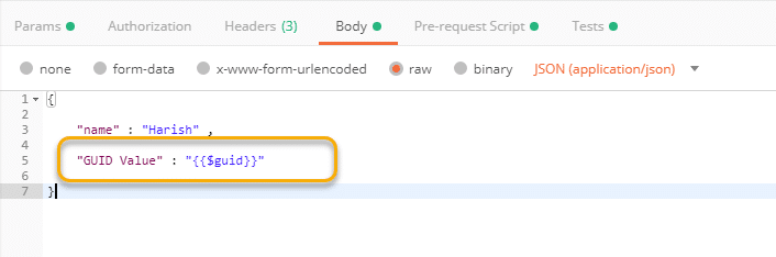 Речь шла о сценариях предварительного запроса. Теперь мы увидим, как GUID можно использовать внутри заголовков и URL-адресов в Postman.