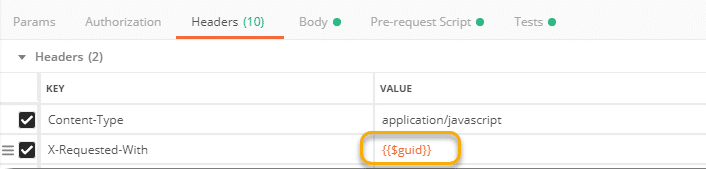 В Postman GUID можно использовать в заголовке, как показано ниже: